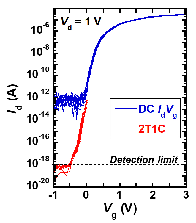 此外,由於氧化物半導體的低關電流特性,預期可降低更新功率。我們已經證明,對於取代過程所形成的水平電晶體,具有高開電流 (>30μA) 和超低關電流 (<1aA,10^-18A) 的能力。此外,我們已成功製造出水平電晶體的 8 層堆疊,並確認該結構內電晶體的成功操作。