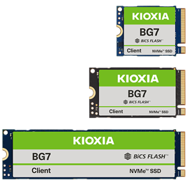 鎧俠 BG7 系列是一款小型的 NVMe™ SSD,容量高達 2,048 GB,採用 PCIe® Gen4 x4 介面和第 8 代 BiCS FLASH™,適用於輕薄型效能導向系統,例如超薄型個人電腦及 AI 筆記型電腦。
